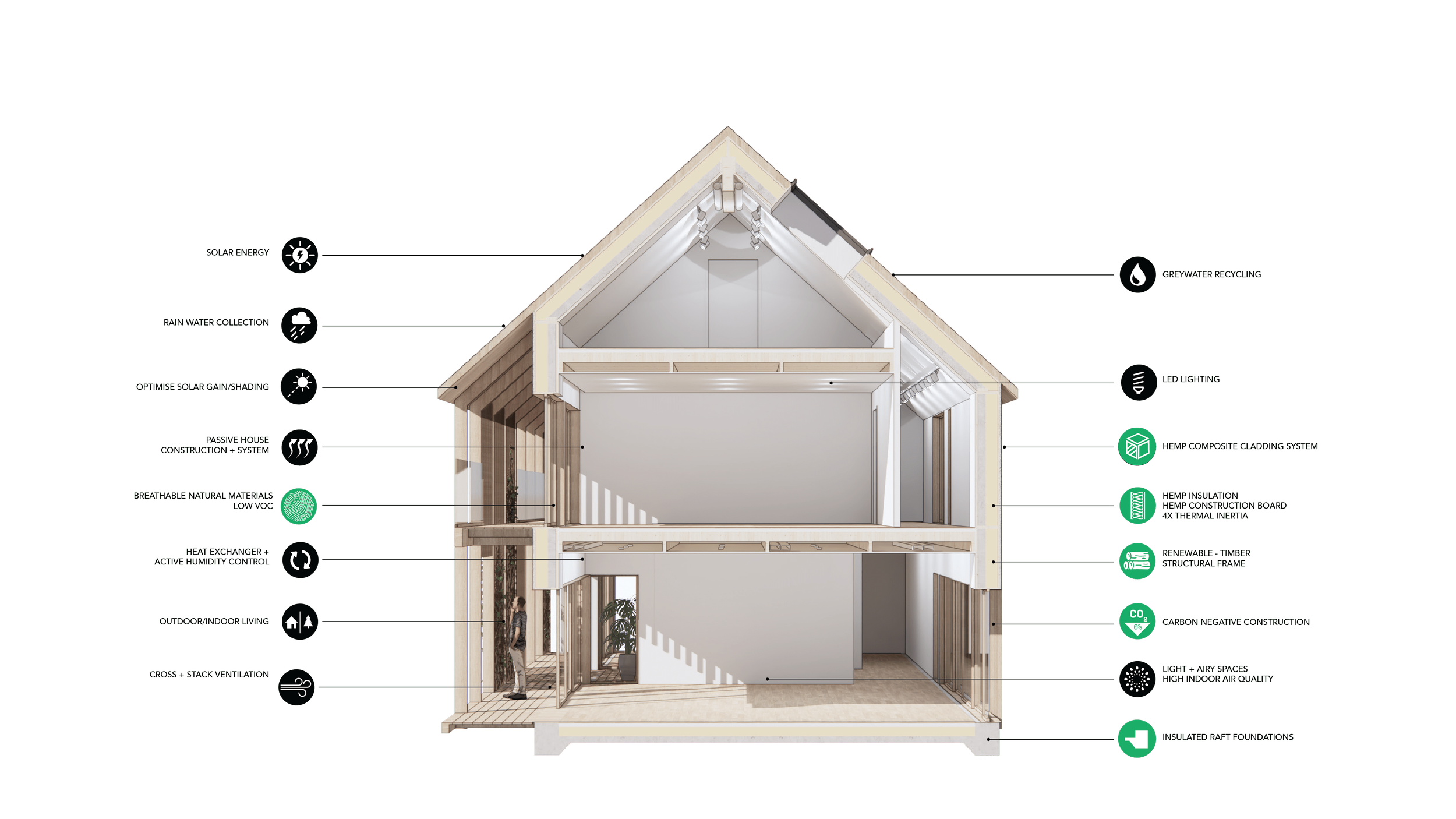 The BIOHAUS® system is a BOPAS-accredited, high-performance, whole-house, Category 2 panellised system setting the benchmark for climate positive living. BIOHAUS® provides a structural solution for residential and public buildings up to three storeys, with further scope to develop designs for buildings up to 18 metres (five storeys).